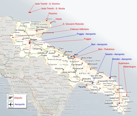 La rete Elicotteristica si estende attualmente per 152 Km. nella provincia di Foggia